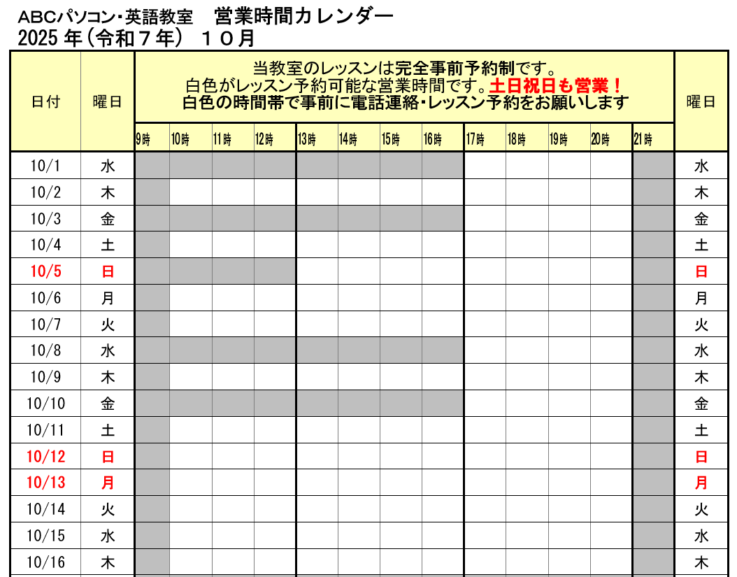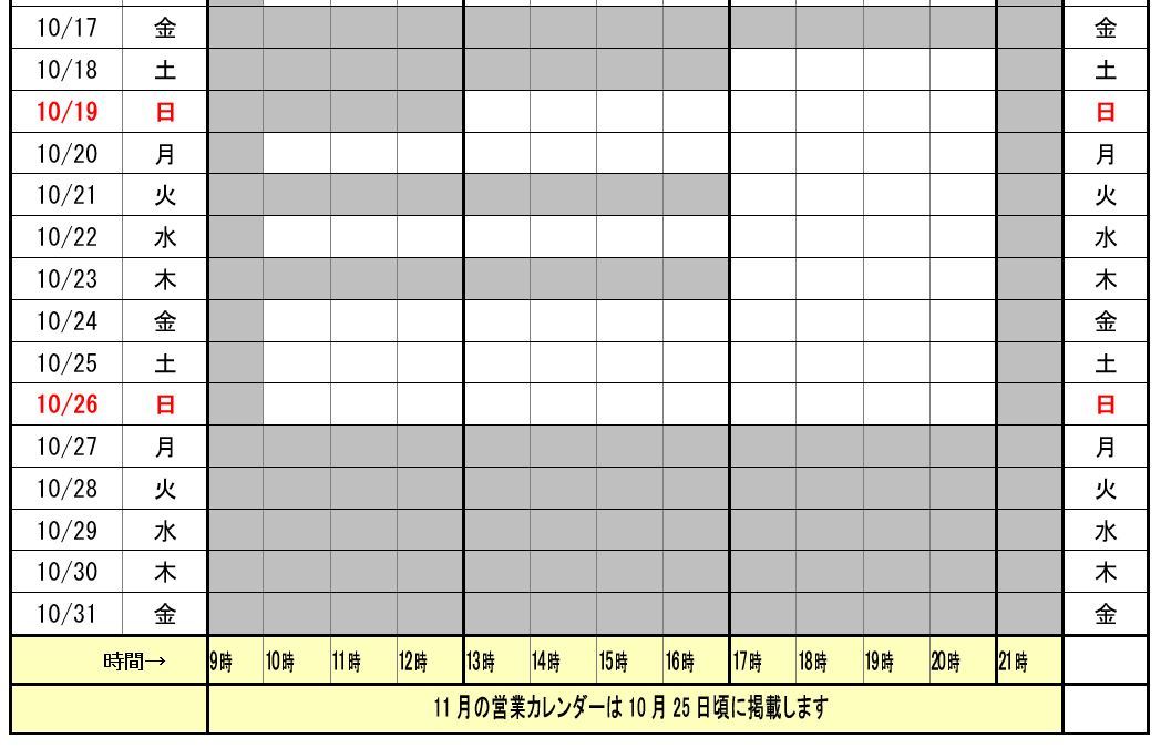 営業日 | 上の営業時間カレンダーをご覧ください。土曜日・日曜日・祝日も営業しております |